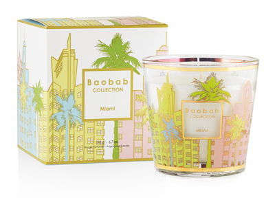 The spring of 2021 also marks the birth of a brand-new concept, My First Baobab. We wanted to invest in the realm of small single-wick candles by creating a series of 8 candles, silk-screened with gold and platinum, using decorations inspired by the architecture of cities or decorated with our monogram pattern. You will find Aurum, Platinum, Brussels, Miami, Paris, Manhattan, Saint Tropez and Ocean Drive in boxes printed with motifs that match the candle glass. The My First Baobab line is a very pretty introduction to our brand, a playful discovery and a very beautiful gift full of humor.
